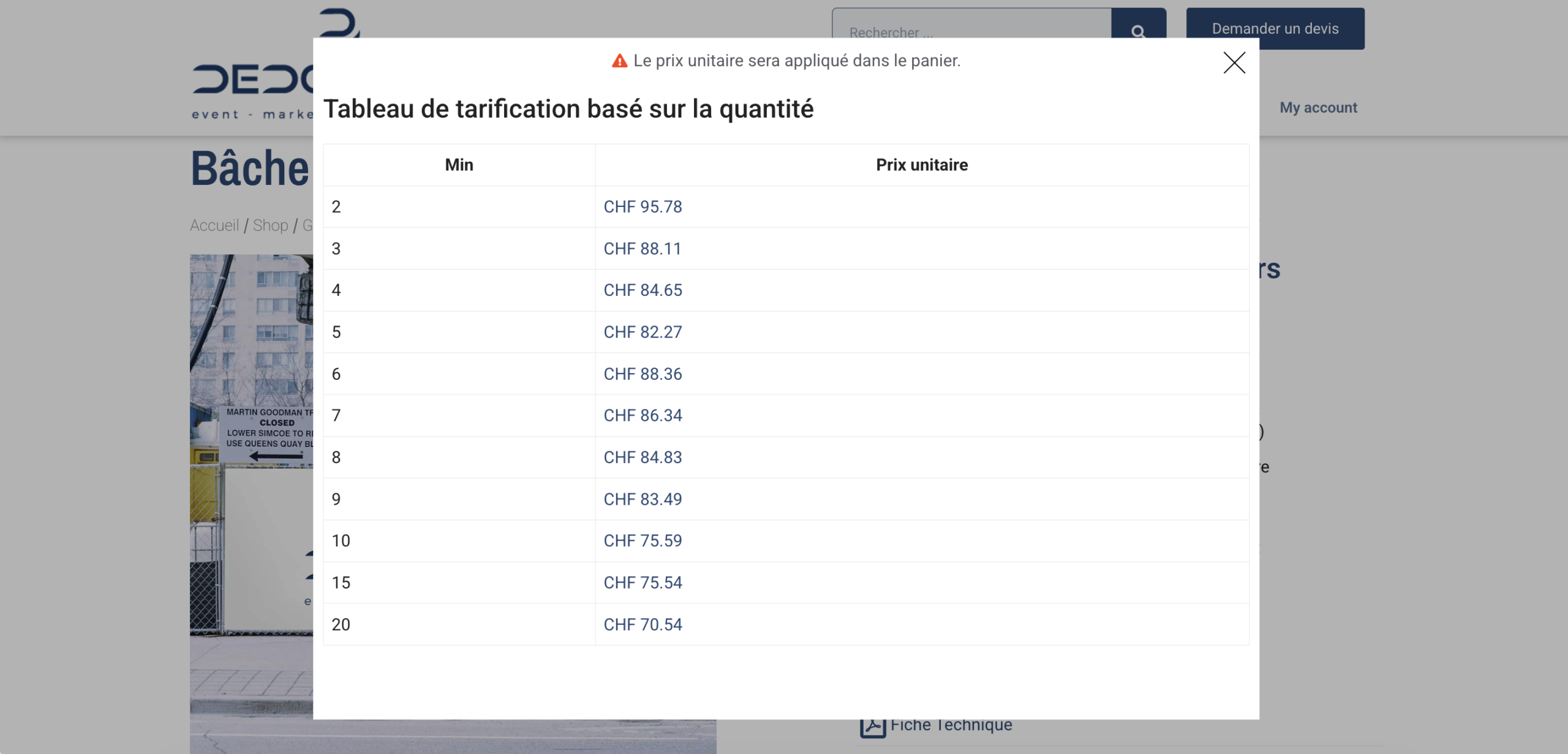 WooCommerce-Shop für eine Marketing- und Eventagentur mit dynamischer Mengenpreis-Staffelung und Offertanfrage-System. Zweisprachig DE/FR.